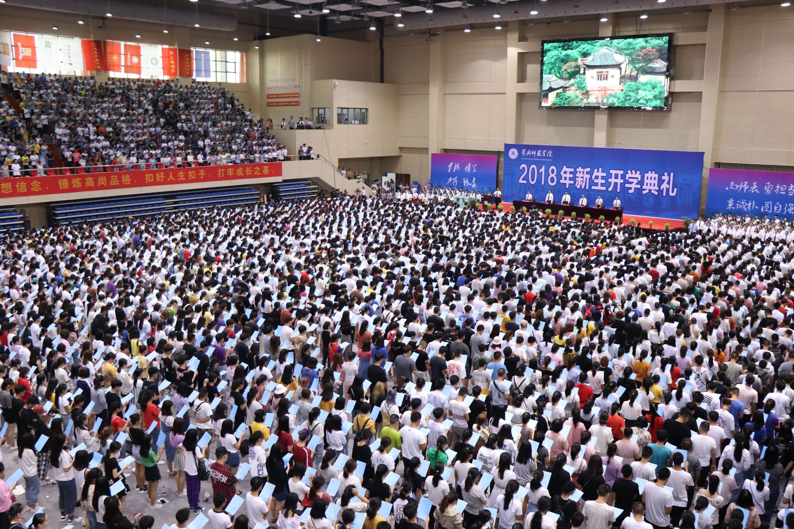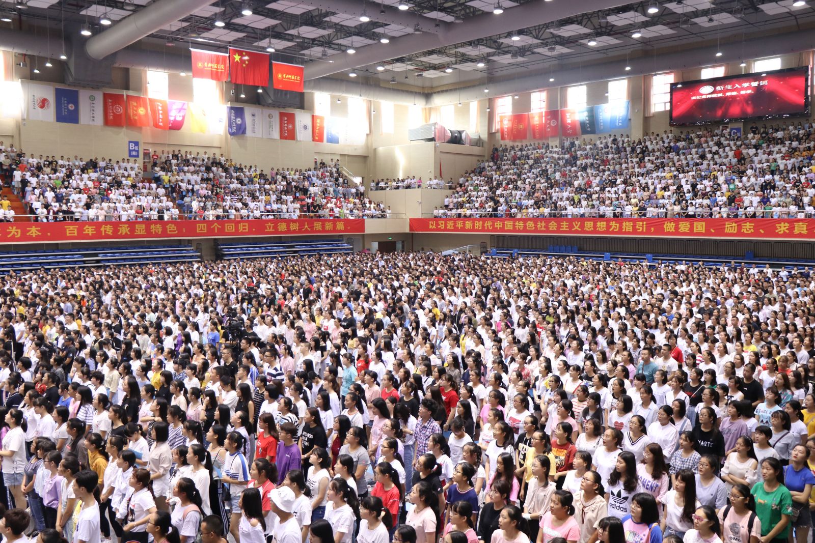 本网讯 9月5日,学校在体育运动中心举行2018年新生开学典礼。与程式化的开学典礼不同,今年的开学典礼以鲜明的主题、互动的形式、全新的理念、宏大的场面吸引了师生们的眼球,呈现出一个“不一样”的开学典礼。