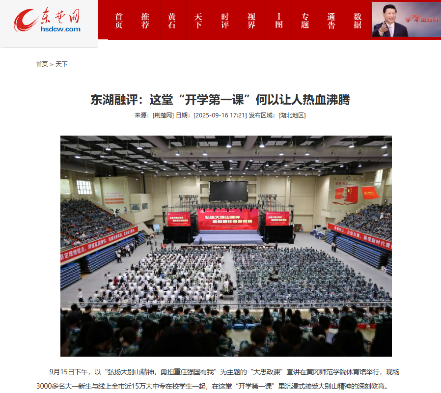 对历史最好的继承就是创造新的历史,对英雄最好的纪念就是英雄辈出。今年是中国人民抗日战争暨世界反法西斯战争胜利80周年。课程选取九三阅兵上的几个与大别山有关的事例,以古鉴今、贯通古今。譬如,选取80面抗战英模部队旗帜里面,“铁锤子团”“金刚钻团”“模范党支部”“刺刀见红”“百战百胜第三营”等与大别山渊源很深的5支部队的故事,引导学生赓续大别山红色血脉,弘扬伟大的抗战精神。当参加九三阅兵的黄冈姑娘谈颖走上讲台与学生们分享体会,当国产精品永久久久久久久久久|91精品无码国产在线观看一区|久久人爽爽人爽爽ąV无码自慰|最新无码国模国产在线|2020最新无码国产在线观看校友操子凯烈士的AI讲话声音响起,当学生全体起立庄严宣誓,现场不少学生流下激动的眼泪。眼泪里有感动,更有“勇担重任、强国有我”的热血沸腾,学生普遍反映,“受教育”“很提气”。
