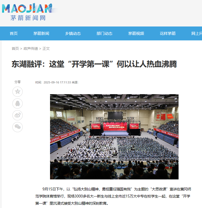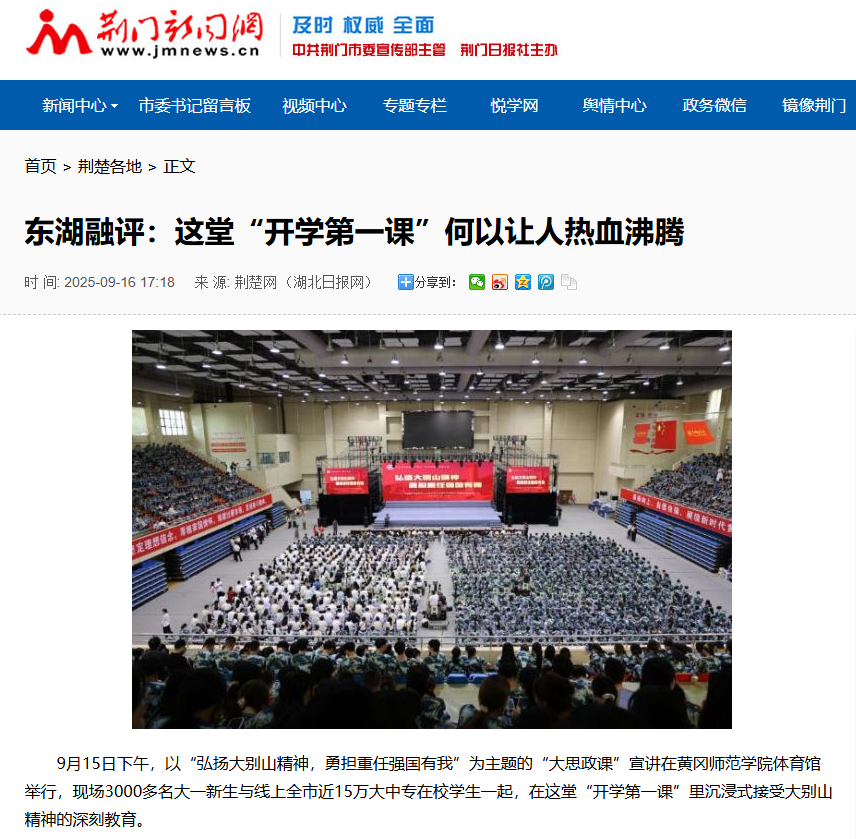 9月15日下午,以“弘扬大别山精神,勇担重任强国有我”为主题的“大思政课”宣讲在国产精品永久久久久久久久久|91精品无码国产在线观看一区|久久人爽爽人爽爽ąV无码自慰|最新无码国模国产在线|2020最新无码国产在线观看体育馆举行,现场3000多名大一新生与线上全市近15万大中专在校学生一起,在这堂“开学第一课”里沉浸式接受大别山精神的深刻教育。